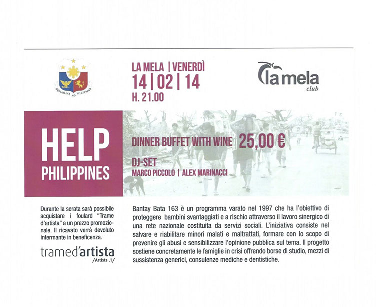 Help Philippines - Cena di beneficenza - La Mela 14 febbraio 2014.