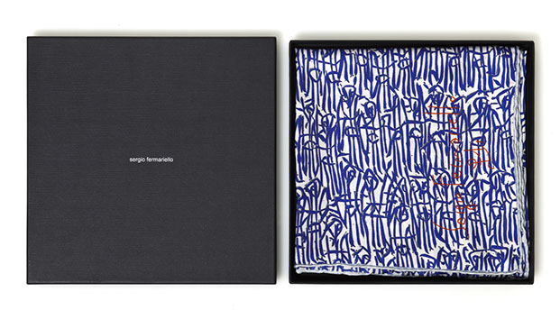 L’equilibrio, il rigore e la precisione, l’ “ostinato consumo” del segno dell’artista, che questa volta è scritto sul foulard, inscenano una storia diversa tutta ancora da vedere e raccontare.